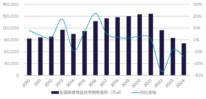 | 2025年开年以来,全国多地楼市延续了2024年四季度以来止跌回稳的向好态势。近日,戴德梁行发布了《2024年四季度全国住宅市场研究》报告,数据显示,政策“组合拳”发挥效力,第四季度新建商品住宅销售面积同比上涨2.9%;四季度住房市场供需双双放量,库存小幅上升。 四季度新建商品住宅销售面积上涨2.9% 2024年国内GDP实现了5%的增速,推动经济总量突破130万亿元大关。全年住宅开发投资同比下降10.5%,降幅与1-9月持平。其中住宅新开工面积及住宅竣工面积分别较上年下降23.0%和27.4%。 相较于竣工面积降幅明显扩大,2024年住宅新开工面积同比降幅相对平稳,意味着在“保交楼”已取得显著成效的当下,房企有限的资金支配力不得不在“谋发展”上做出更多布置,结合住宅新规逐步在各地落地,预示着我们即将迎来以居住环境品质升级为代表的新一轮的楼市供应周期。